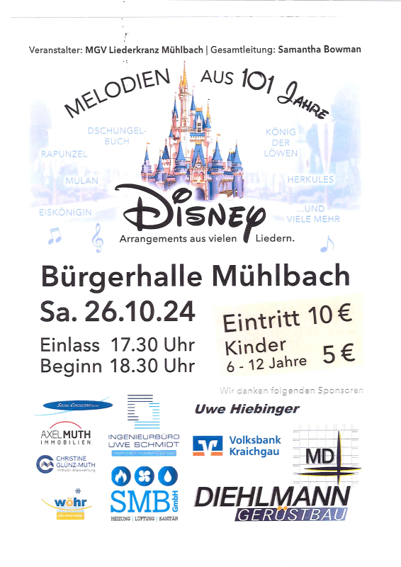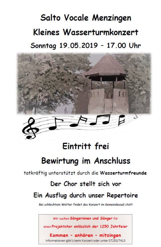 Wenige Restkarten können noch wahlweise bei Brillen Steiert in Münzesheim oder bei den aktiven Sängern erworben, sowie