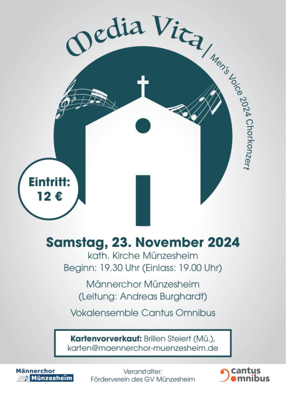 Der Beginn ist um 18.30 Uhr. (Einlass ab 18.00 Uhr) Der Kartenvorverkauf ist bereits eröffnet. Eintrittskarten zum Preis von 13€ (Abendkasse 15€) erhält man in Münzesheim bei der Metzgerei Deckinger und dem Geschenkhaus Rick oder unter karten@maennerchor-muenzesheim.de aber auch über jeden Sänger der teilnehmenden Chöre.