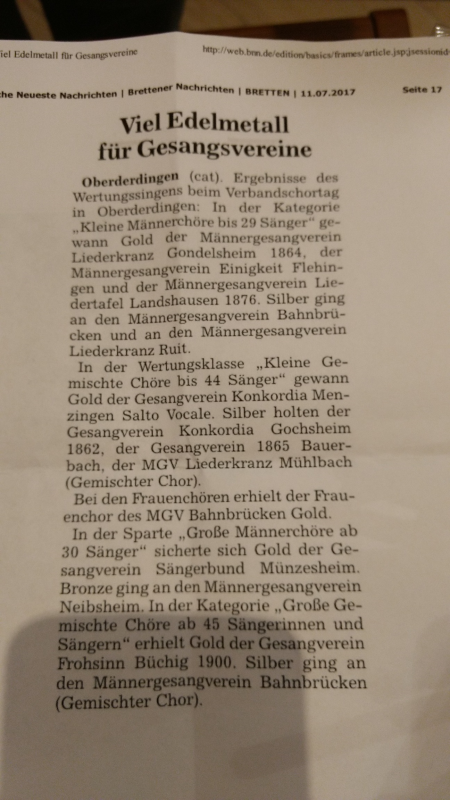 Bruchsal und der Landeschorwettbewerb 2017 in Bretten. Gerade bei letzteren zwei