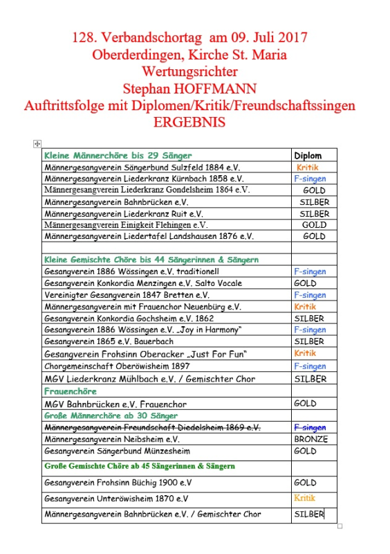 Vielen Dank und herzliche Glückwünsche auch nochmals an dieser Stelle an alle Sängerinnen und Sänger für ihre hervorragende Leistungen.